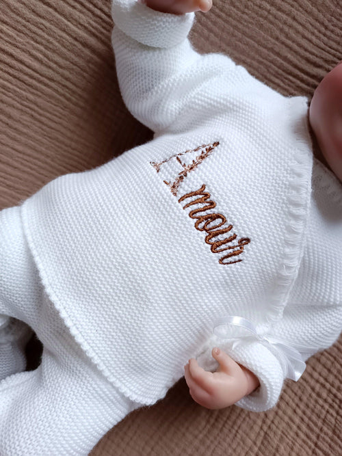 Combinaison maille blanc, croisé, 0/3 mois, 3 pièces - personnalisable - -