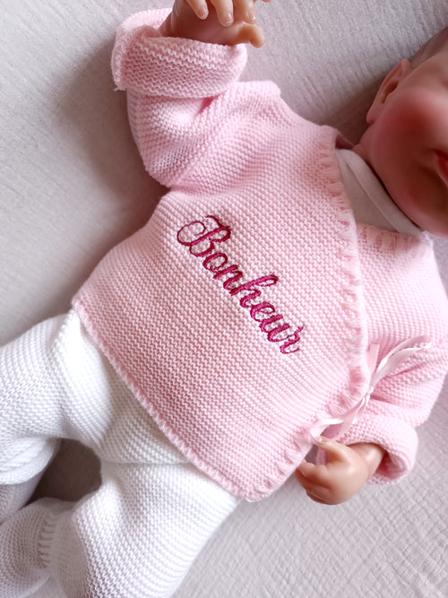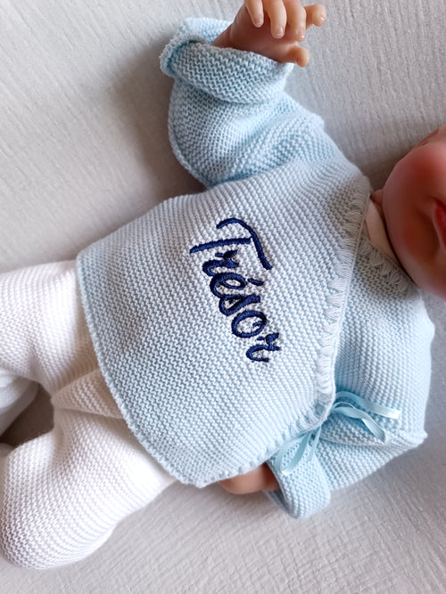 Combinaison maille bleu ciel croisé, 0/3 mois, 3 pièces - personnalisable - -