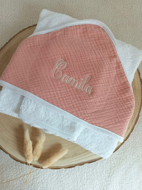 Doudou lange gaze de coton et polaire - rose - personnalisable - -