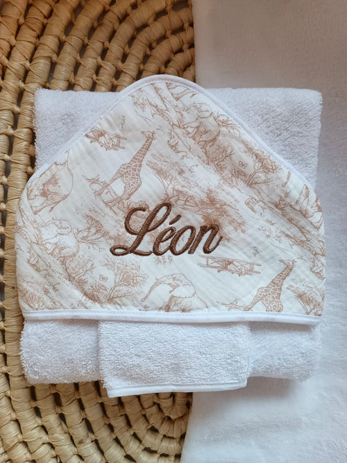Doudou lapin en gaze de coton safari tons beige - personnalisable - -