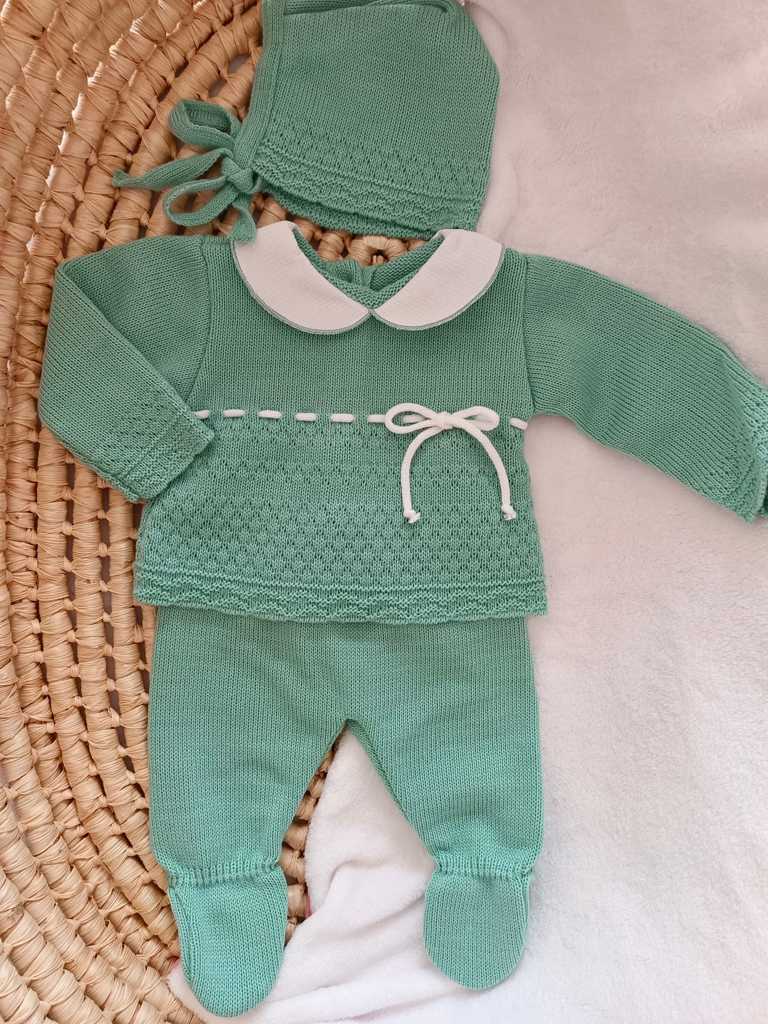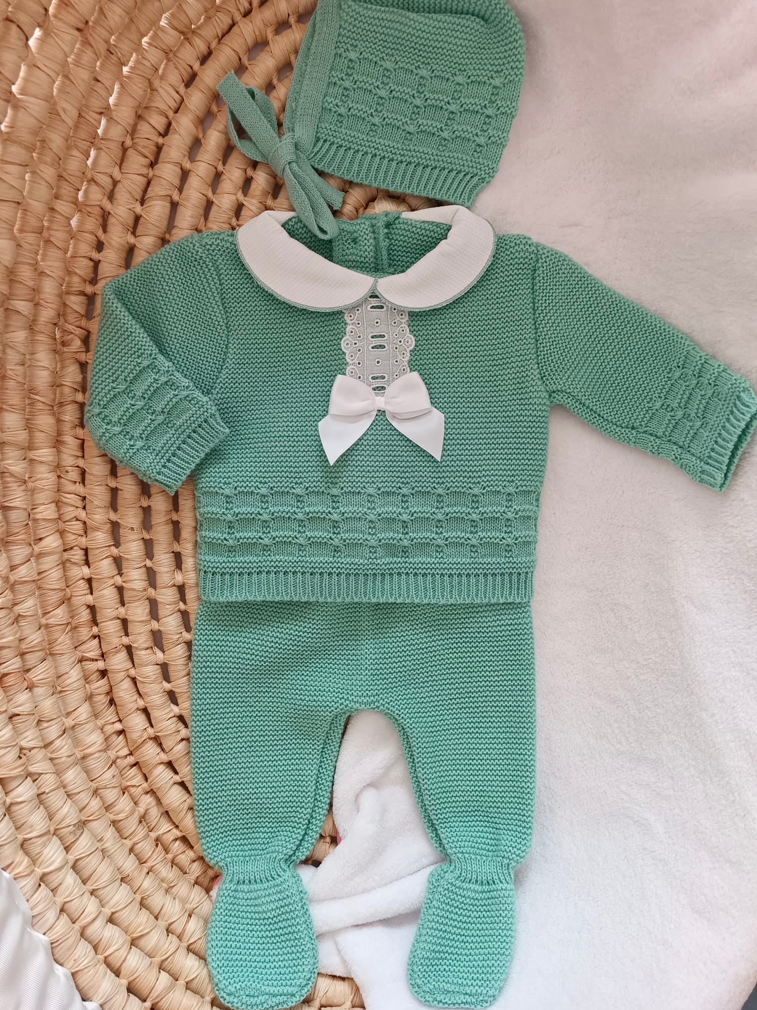 Ensemble complet naissance vert avec détails lacet blanc 0/3 mois -