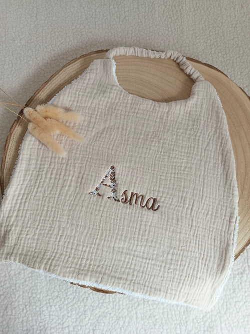 Cape de bain en gaze de coton et polaire fleurs de coton tons beige/marron